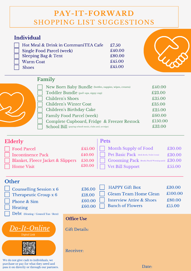 In these challenging times, supporting one another is more important than ever. Our Pay-It-Forward scheme is a compassionate and inclusive way for individuals to support their neighbours and friends in the community.